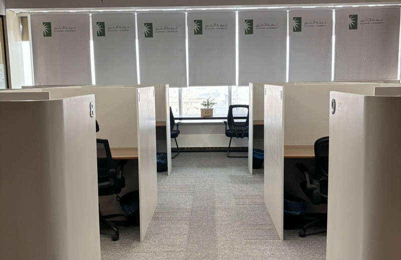 تتميز المكاتب المشتركة بإطلالة المدينة نهاراً و سماء الخرج المنيرة ليلاَ وذلك يجعل صاحب العمل او الطالب على استعداد للانجاز أكثر بحكم المناظر المحفزة كما تساعدة على الاختلاط بالمجتمع المحيط به بالإضافة الى المزايا المتاحة لتحقيق الاهداف بقيمة اقتصادية شهرية و الوصول الحر على مدار الساعة