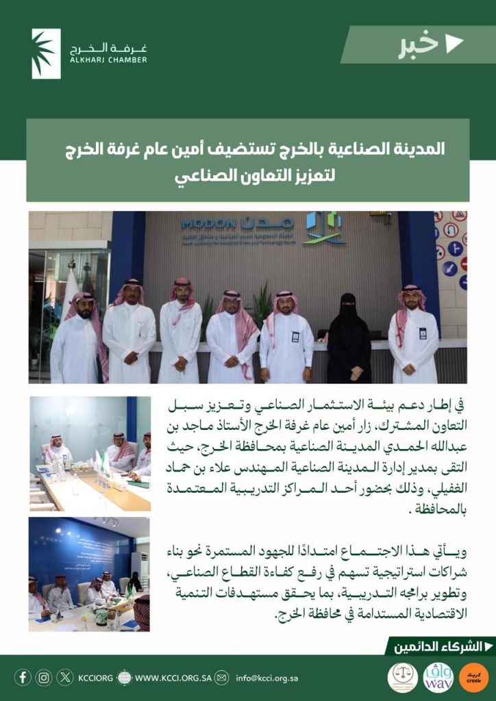 المدينة الصناعية بالخرج تستضيف أمين عام غرفة الخرج لتعزيز التعاون الصناعي