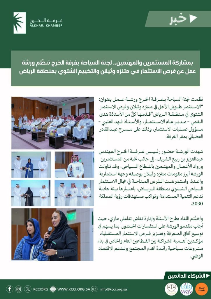 بمشاركة المستثمرين والمهتمين .. لجنة السياحة بغرفة الخرج تنظم ورشة عمل عن فرص الاستثمار في متنزه وثيلان والتخييم الشتوي بمنطقة الرياض