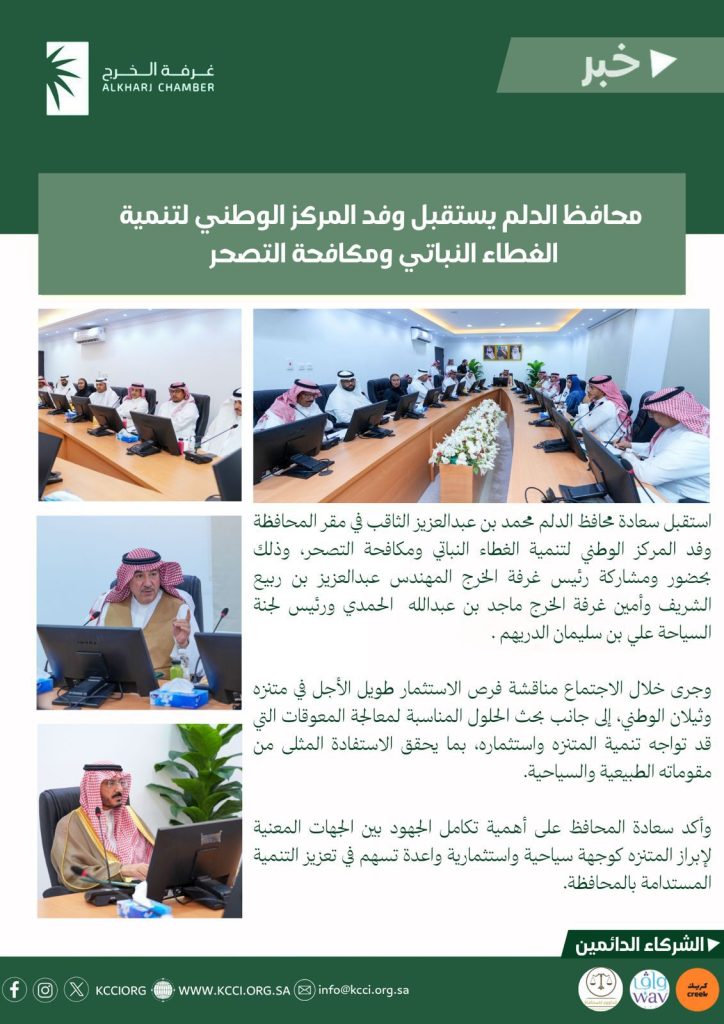 محافظ الدلم يستقبل وفد المركز الوطني لتنمية الغطاء النباتي ومكافحة التصحر